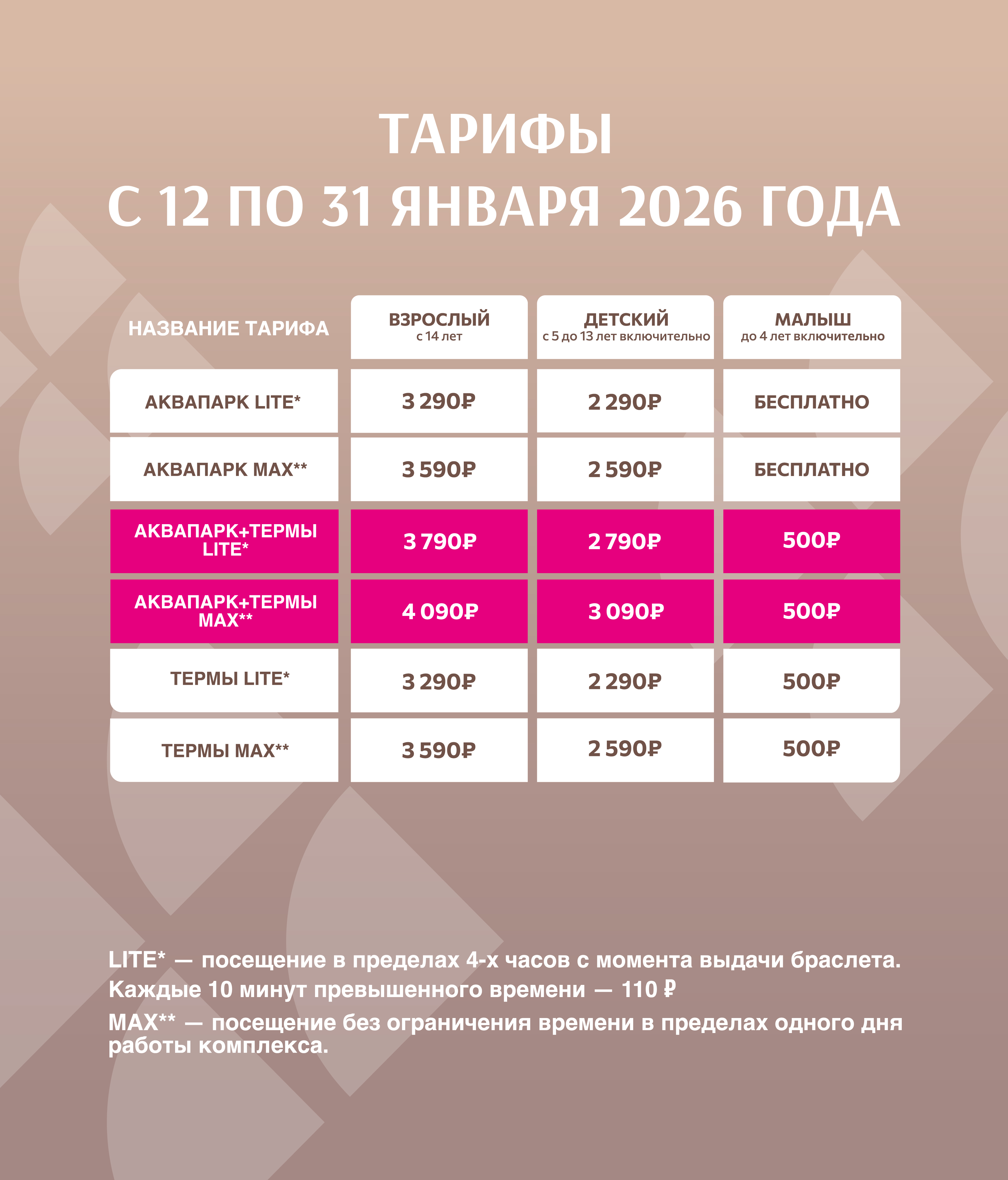 Публикуем тарифы на январь 2026 года